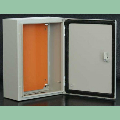 Metalinė dežė ir durelės, montažinė plokštė, užrakto sistema, sandarinimo gumos, aklidankčiai. Pagaminta iš lakštinio plieno.